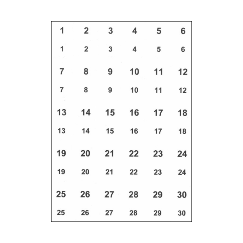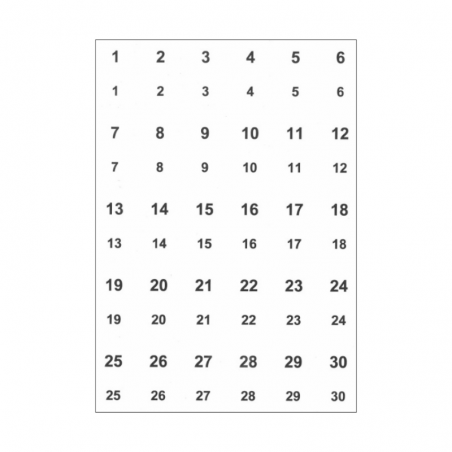 21 x 29.7 cm Planche de numéros de 1 à 30 x 2ex Offset 90 g Noir