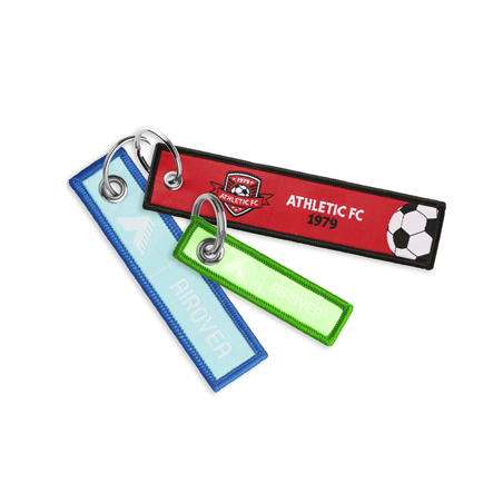Porte-clés en tissu avec votre logo tissé sur une ou deux faces.