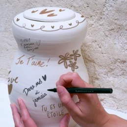 L'urne Pensées est personnalisable à l'aide de feutres permanents.