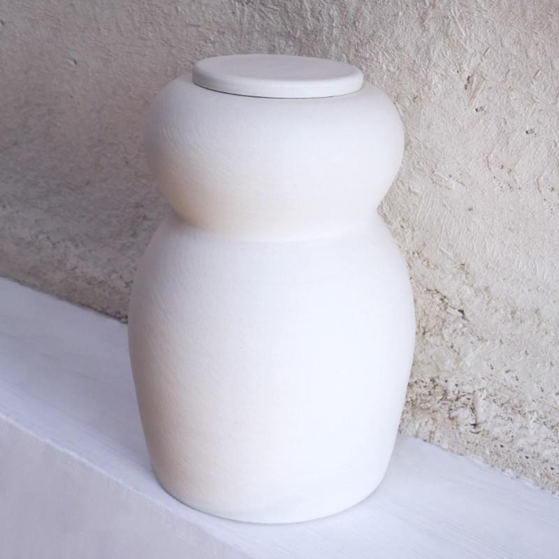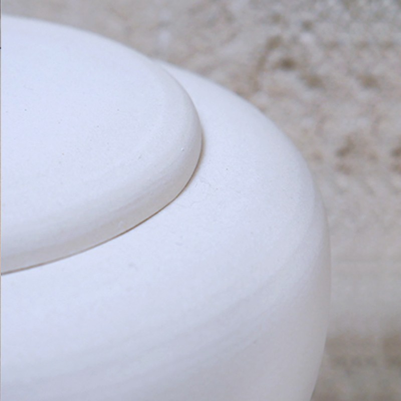 L’urne Pensées est réalisée en tournage sur un tour de potier.