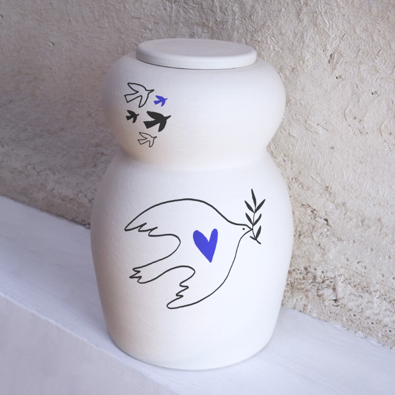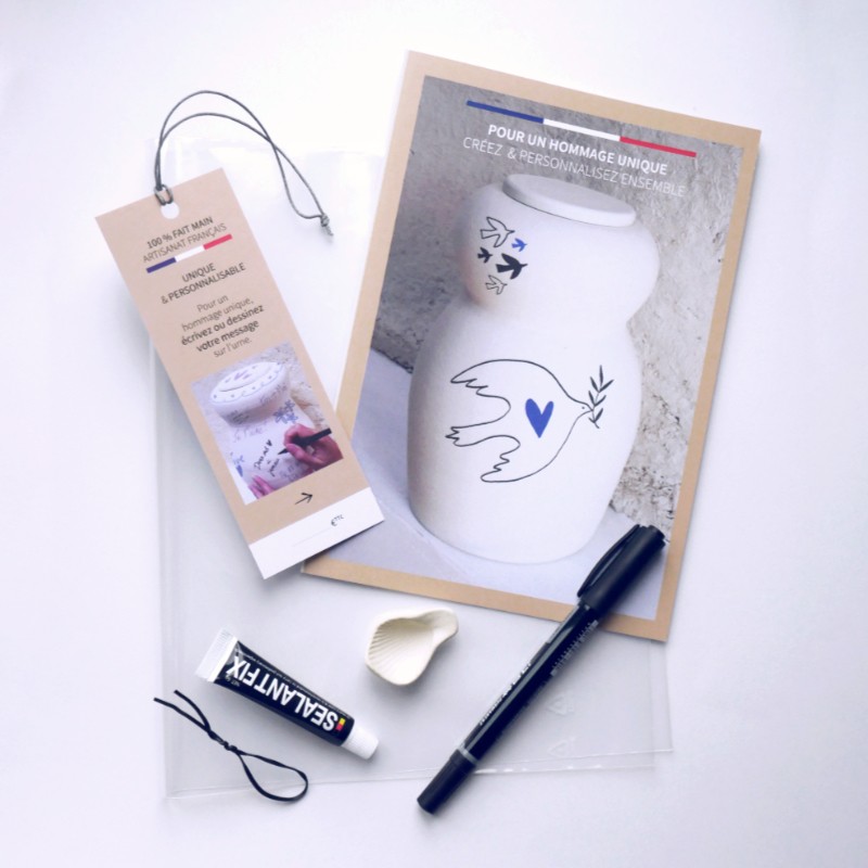 - 1 pétale du souvenir : façonné et cuit dans la même terre que l'urne Pensées, il est tactile et discret. Il pourra être emporté par un proche ;